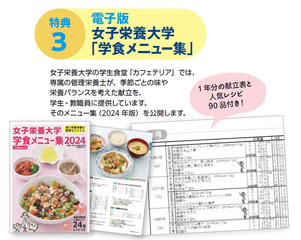 特典③  女子栄養大学学食の献立集 献立の参考にもなる学食のレシピ集です